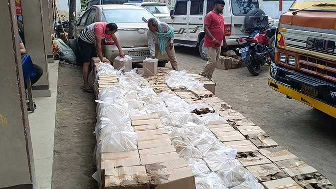 बनकटा थाना क्षेत्र के रामपुर बुजुर्ग बॉर्डर के पास बिहार के धरनीछापर चेकपोस्ट पर मैरवा पुलिस ने रविवार की सुबह एक ट्रक की रोक कर जांच की। कद्दू की आड़ में तस्कर करीब 297 पेटी अंग्रेजी शराब ले जा रहे थे। जिसे पुलिस ने बरामद कर लिया। जिसकी कीमत बाजार में करीब दस लाख रुपये आंकी जा रही है। गिरफ्तार तस्करों की पहचान दिल्ली के महेंद्र पार्क थाना क्षेत्र के आजादपुर गांव के प्रदीप सिंह, बिहार के नालंदा जनपद के अलौधिया गांव के विनय सिंह तथा यूपी के महाराजगंज थाना क्षेत्र के मोहानापुर के जयंत कुमार के रूप में हुई।
