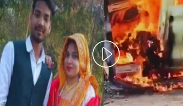 बताया जा रहा है कि कार में आग लगने के बाद आग सीएनजी सिलेंडर तक पहुंच गई. कार सवार नव दंपति ने सीट बेल्ट खोलने और उतरने का प्रयास भी किया लेकिन आग की लपटें इस कदर तेज़ थी कि कुछ ही समय मे कार धूं-धूं कर जलने लगी. पति-पत्नी के जिंदा जलने का एक वीडियो भी सामने आया है.