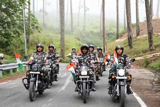 रानीखेत । रानीखेतमें आजादी का अमृत महोत्सव के तहत एसएसबी सीमांत मुख्यालय की ओर से मंगलवार को भव्य तिरंगा बाइक रैली निकाली गई। महानिरीक्षक अमित कुमार के निर्देशन में रैली तिरंगा चौक, रानीखेत बाजार, नर्सिंग ग्राउंड होते हुए गनियाद्योली में संपन्न हुई। इस दौरान लोगों से 13 से 15 अगस्त तक घरों और प्रतिष्ठानों पर तिरंगा फहराने की अपील की गई।