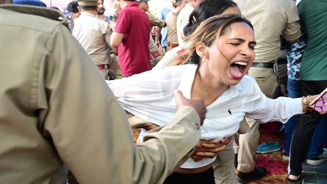 अनशनकारी को जबरन उठाया, बर्गर खिलाकर अनशन तुड़वाया, महिलाओं संग धक्का-मुक्की